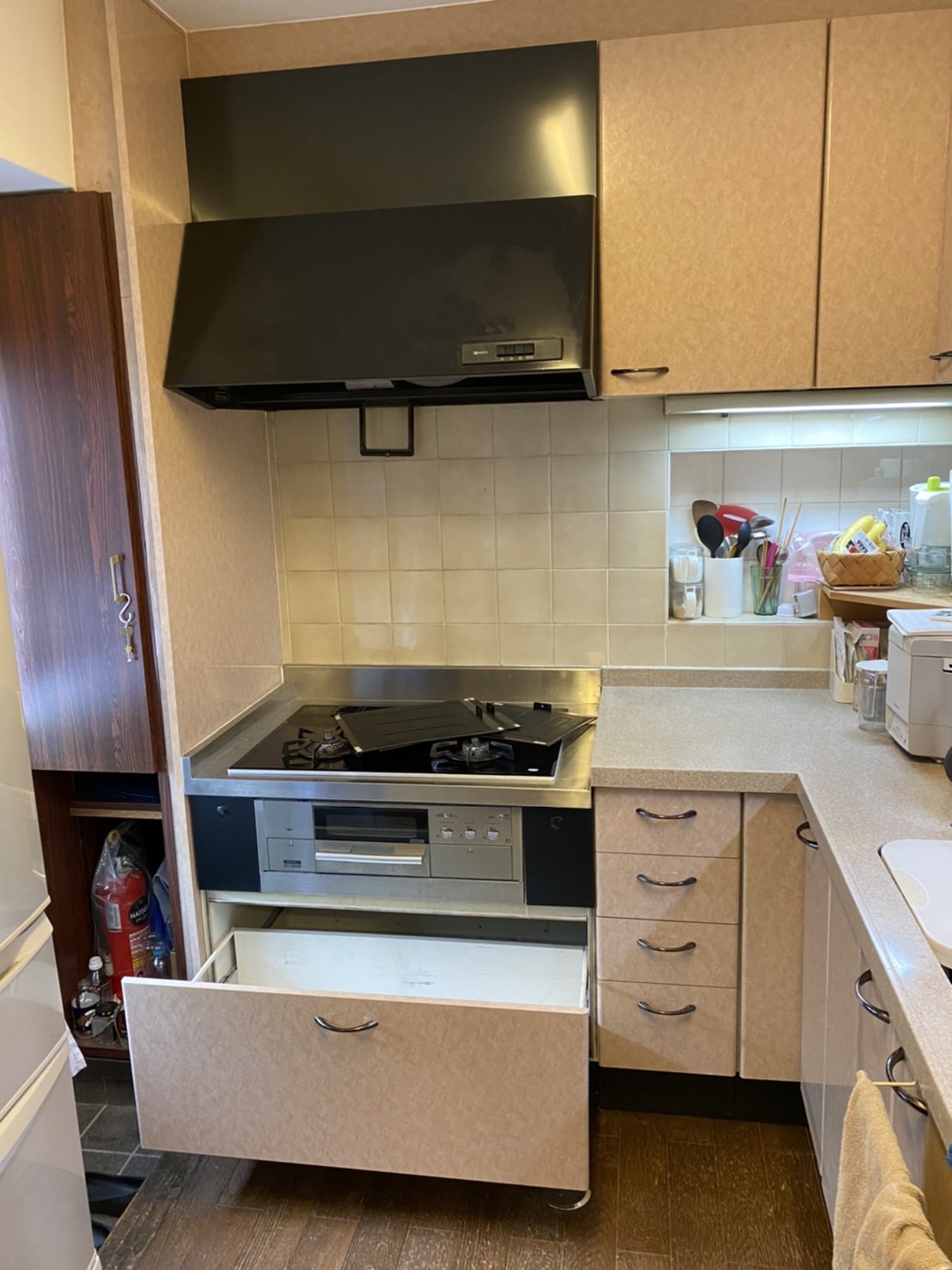 こちらも長年使用してたビルトインコンロを寿命が来たのをきっかけにレンジフードもセットで交換することになりました。