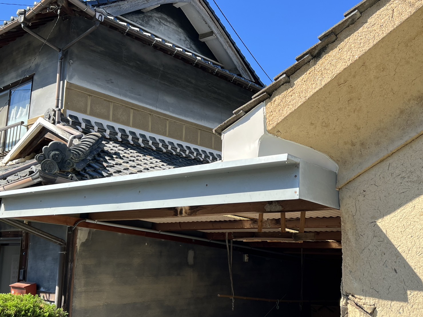 様々な方法を検討し、可能な限り土壁を撤去して、採寸した特注の水切りカバーを全体にかぶせ雨水を防ぐ方法にしました。