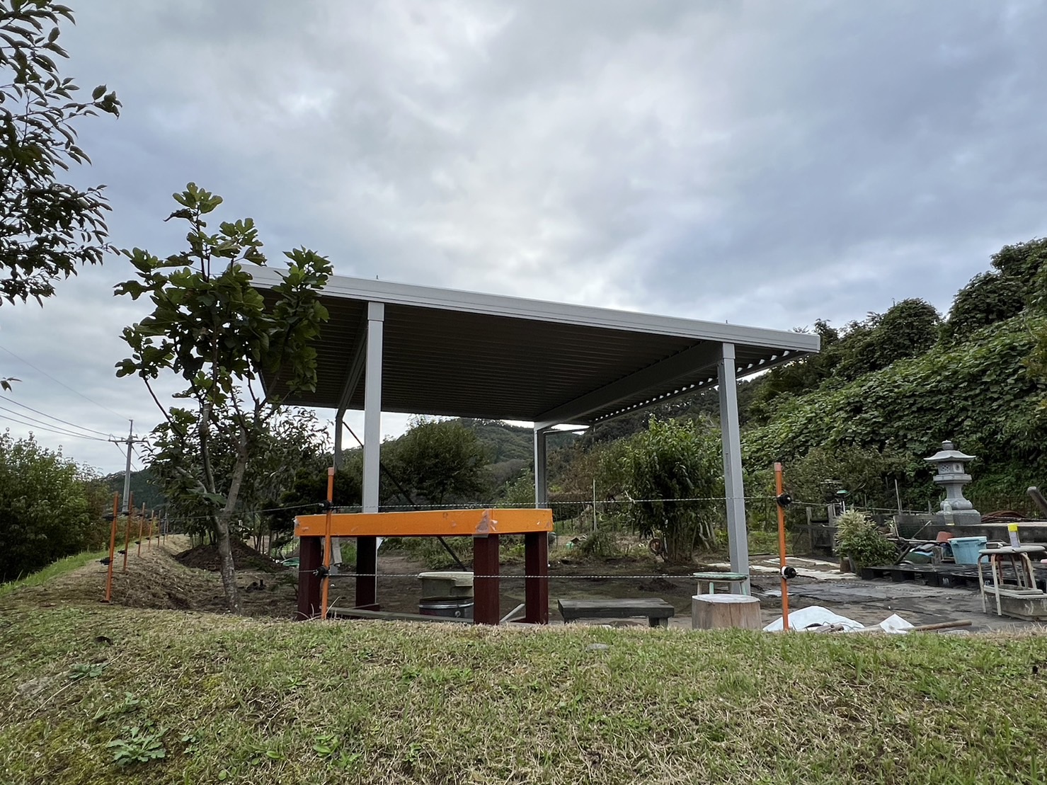 なんと!畑の真ん中に2台サイズのカーポートを設置しました。