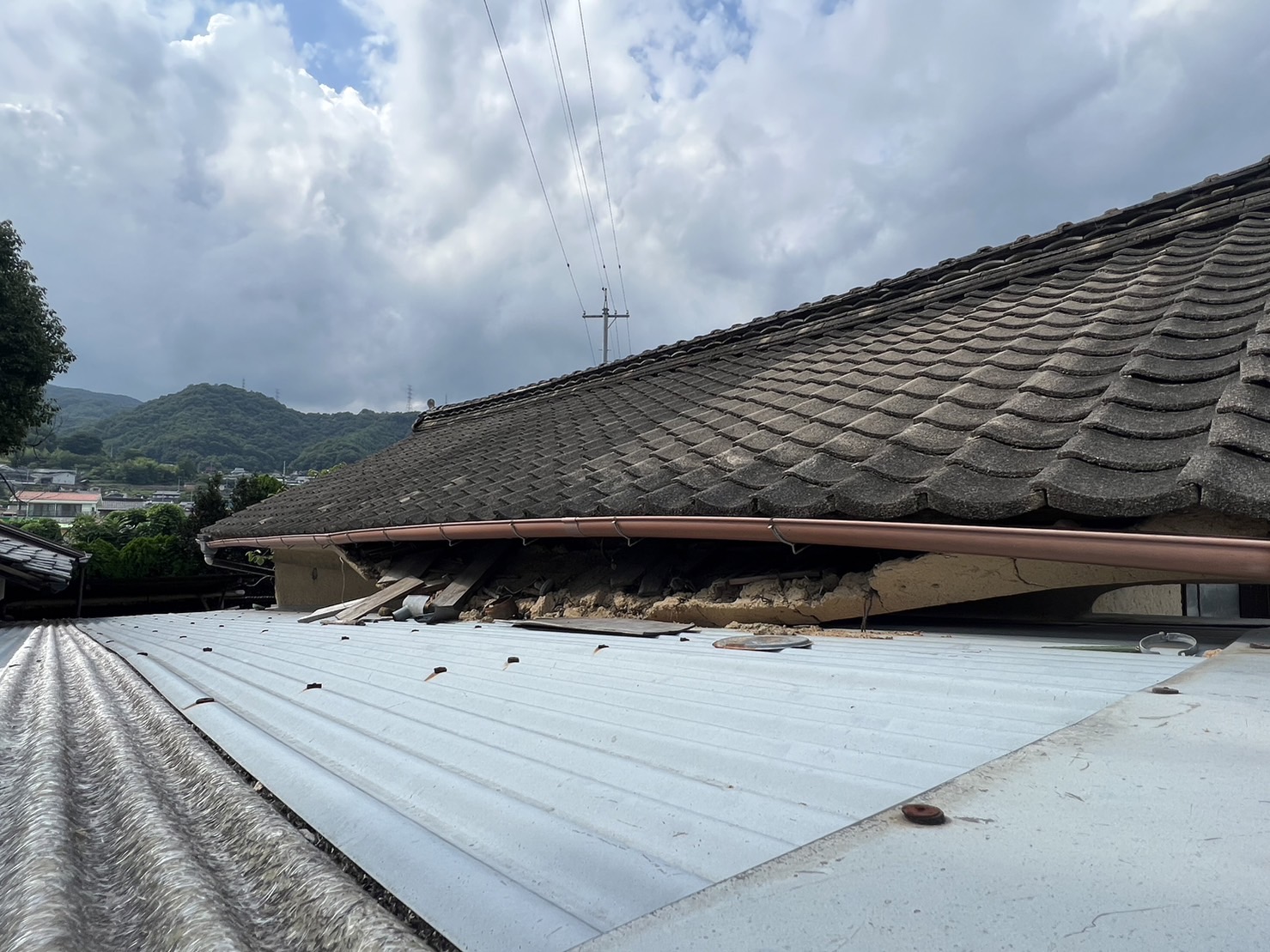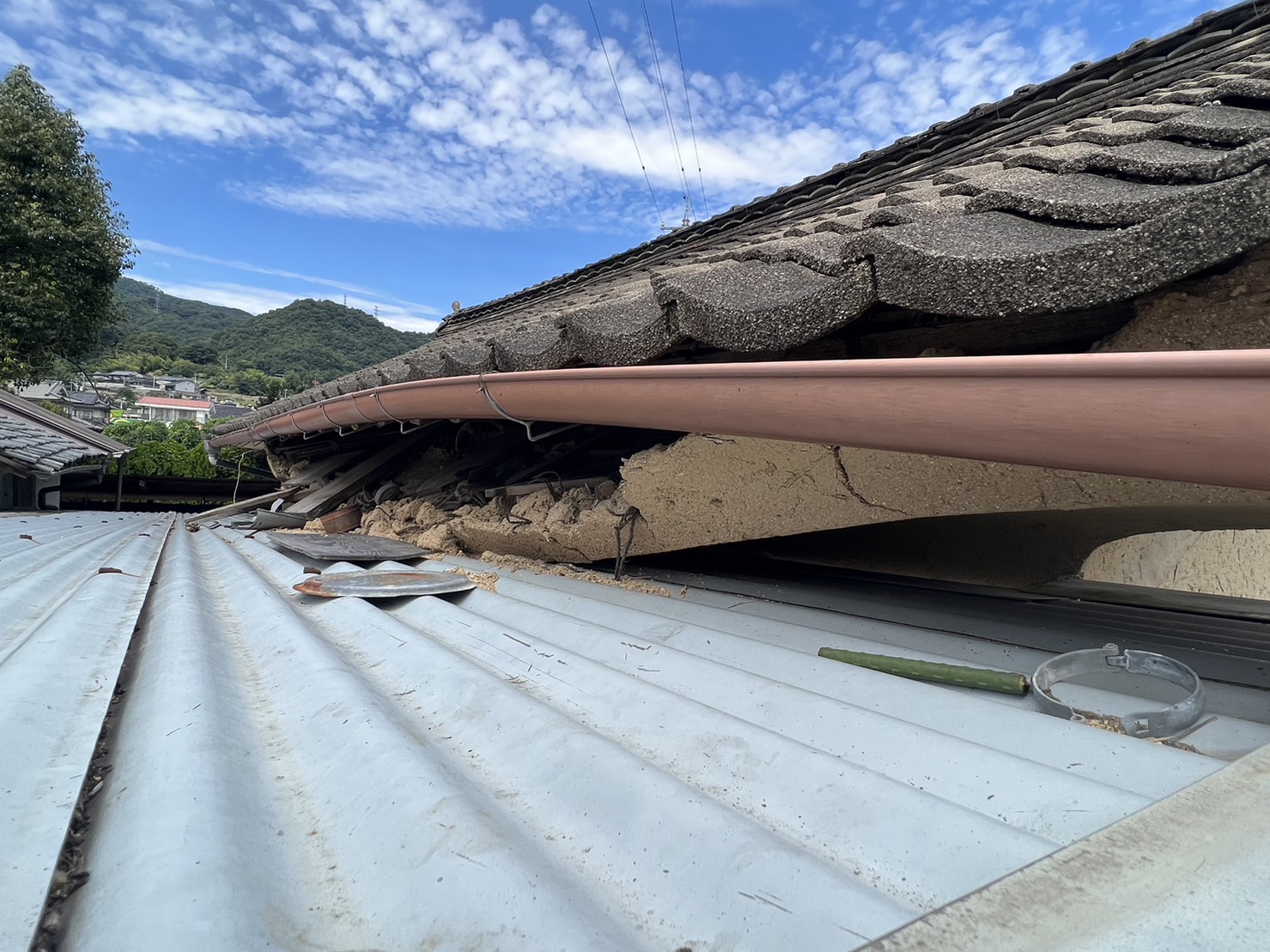カーポートの屋根からの雨水の悪影響で、蔵の土壁が少しずつ落ちてきており、