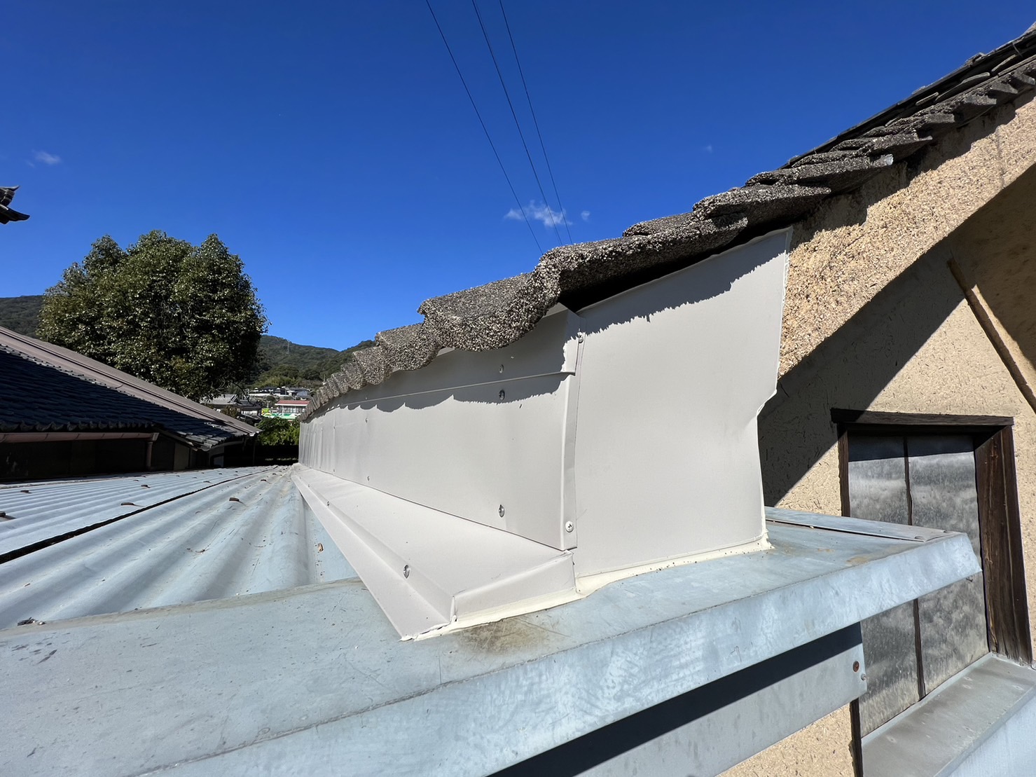 様々な方法を検討し、可能な限り土壁を撤去して、採寸した特注の水切りカバーを全体にかぶせ雨水を防ぐ方法にしました。