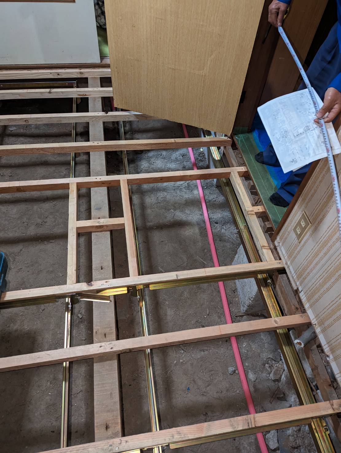 想像以上に床にダメージがあったためすべての根太(ねだ)を取り、